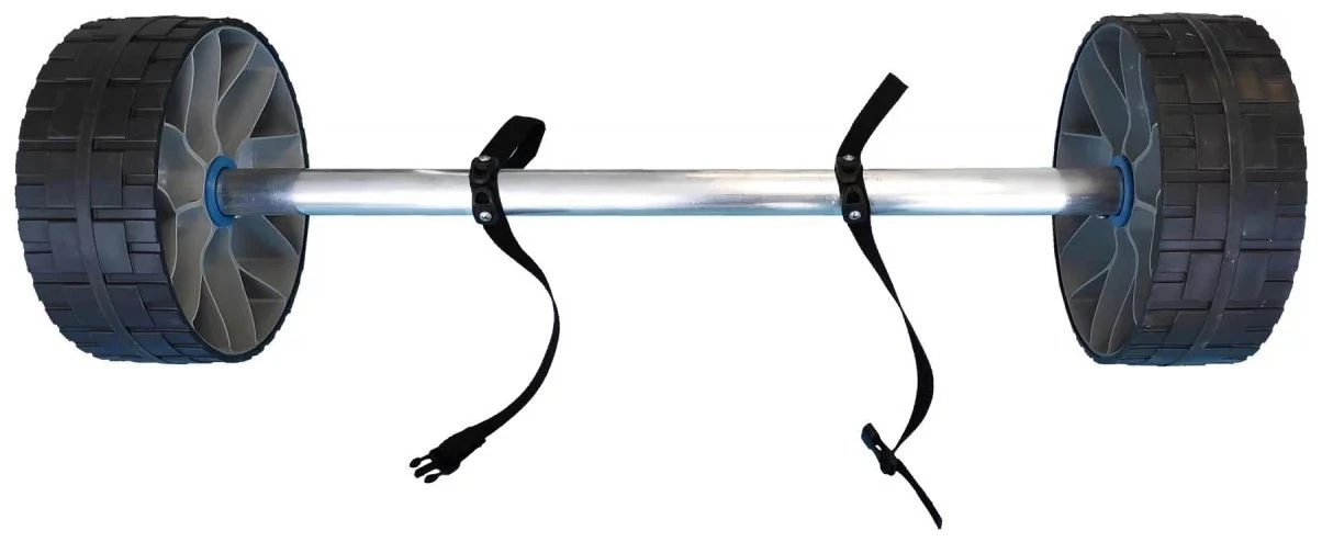 Easily attach these all-terrain wheels to your Pakayak bag.
