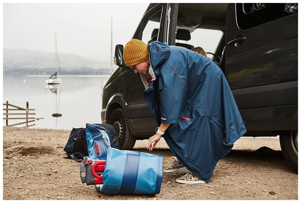 Un nouveau look pour notre gamme phare Compact, avec une surpiqûre douce grise et cyan et un nouveau tablier fendu. Cela permet à l’eau de s’écouler plus efficacement et améliore la « compressibilité » de la planche. Il permet à la planche de se plier sur la charnière, le rendre plus facile à plier et à rouler.
