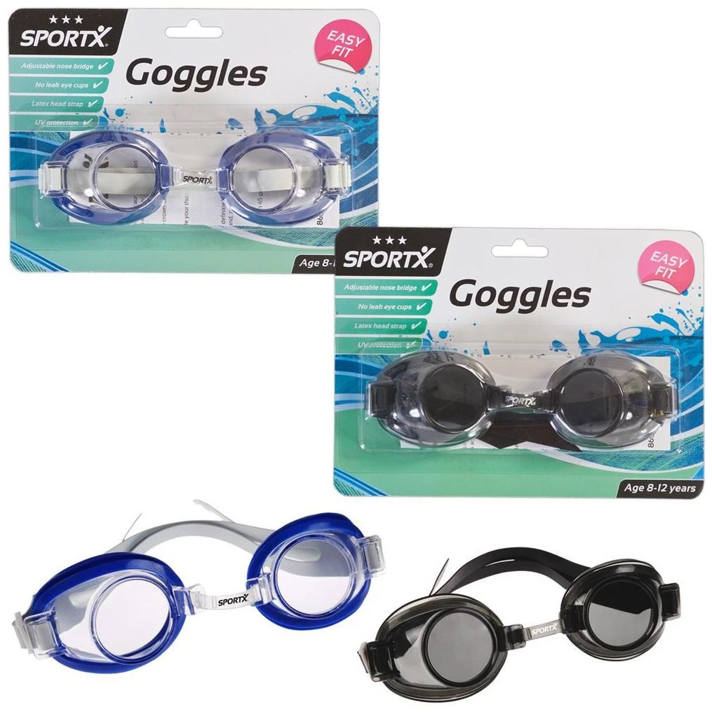 SportX Junior zwembril, kwaliteit drie sterren, met comfortabele anti-lek pasvorm, verstelbare hoofdband en neusbrug, veiligheidslenzen, UV-bescherming en latex hoofdband